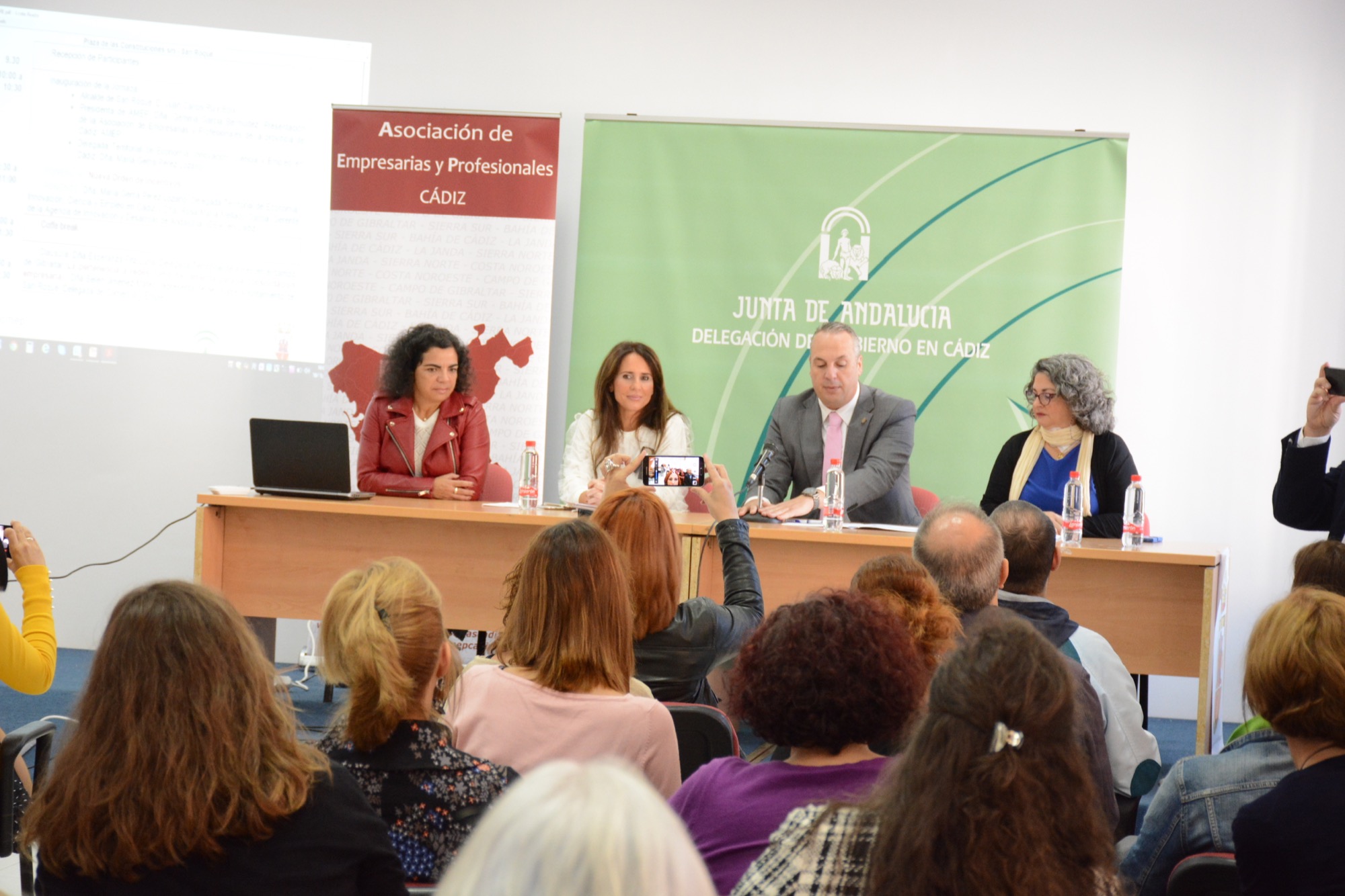 El acto inaugural de la jornada, que tenía como objetivo crear redes y sinergias entre empresarias del Campo de Gibraltar, ha corrido a cargo del alcalde, Juan Carlos Ruiz Boix, la delegada provincial de Empleo de la Junta, Gema Pérez; y la presidenta de la Asociación de Empresarias y Profesionales de Cádiz, Gemma García.