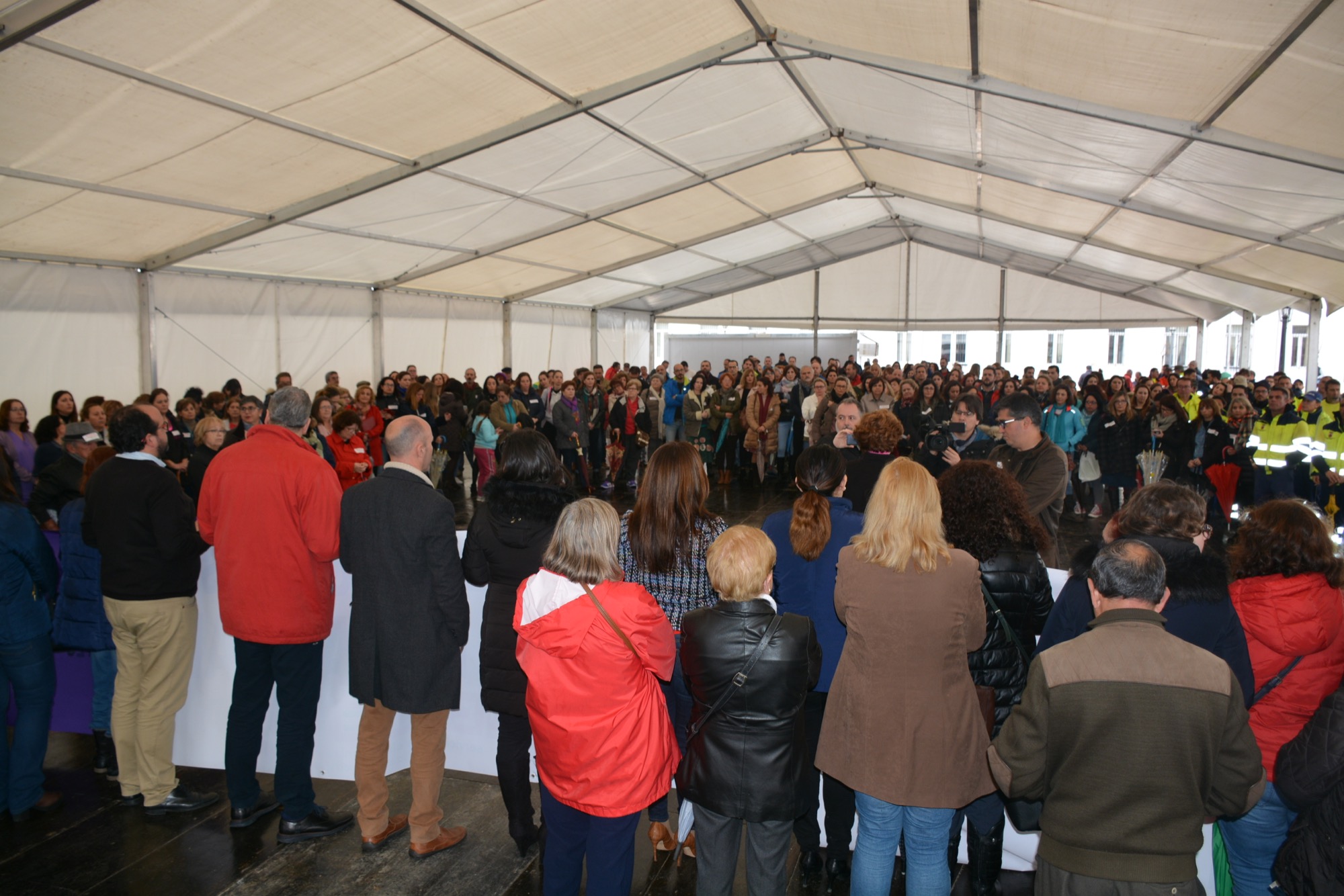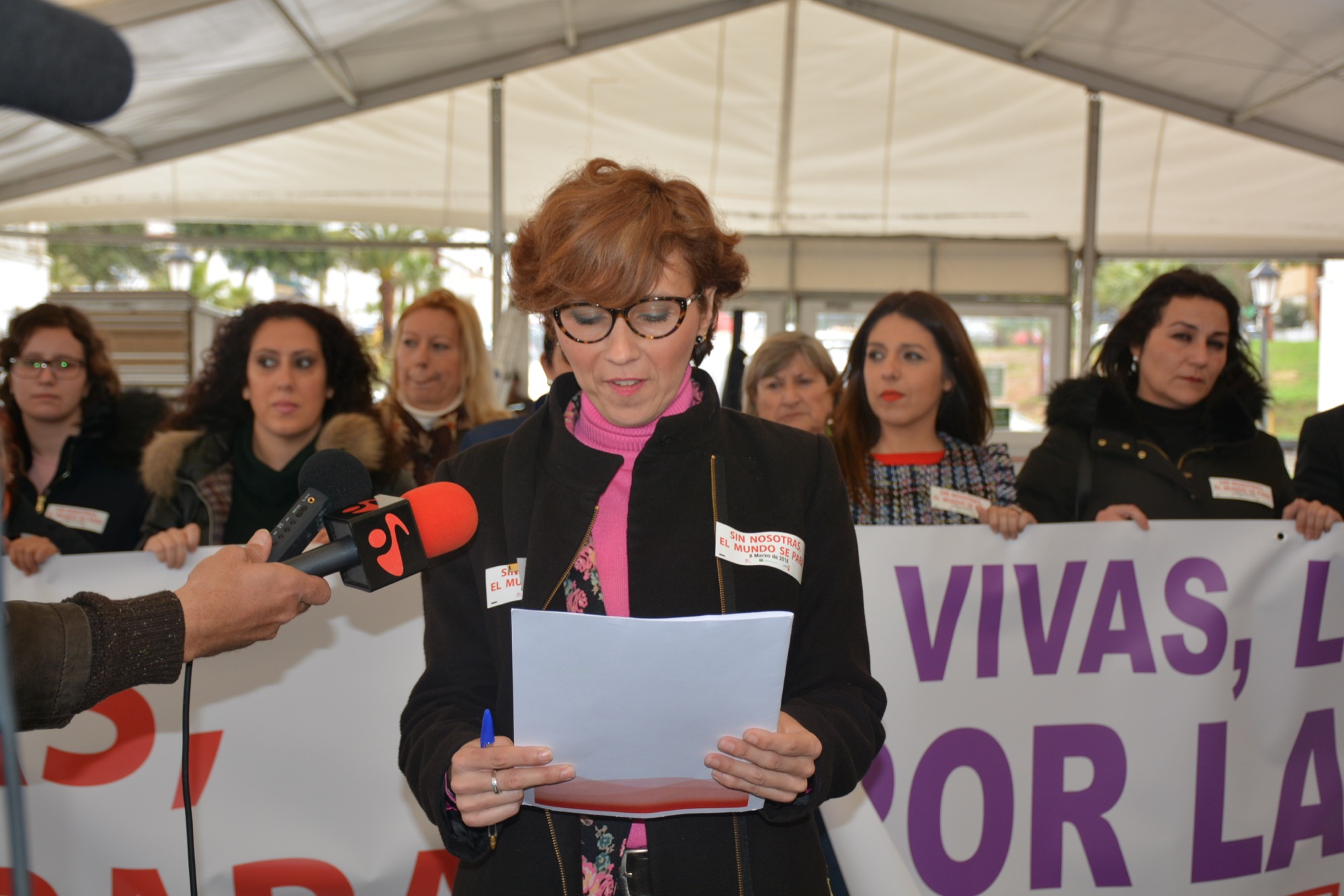 Alrededor de medio centenar de personas, la mayoría mujeres, ha participado hoy, jueves, en la concentración en la Plaza de las Constituciones con motivo del Día Internacional de la Mujer y en apoyo del paro de dos horas para reivindicar la igualdad laboral, al que se ha sumado el Ayuntamiento. La concejal de Igualdad y Asuntos Sociales, María Teresa Benítez, leyó un manifiesto en el que se exige un cambio social “en el que las mujeres sean protagonistas y copartícipes de todo”.