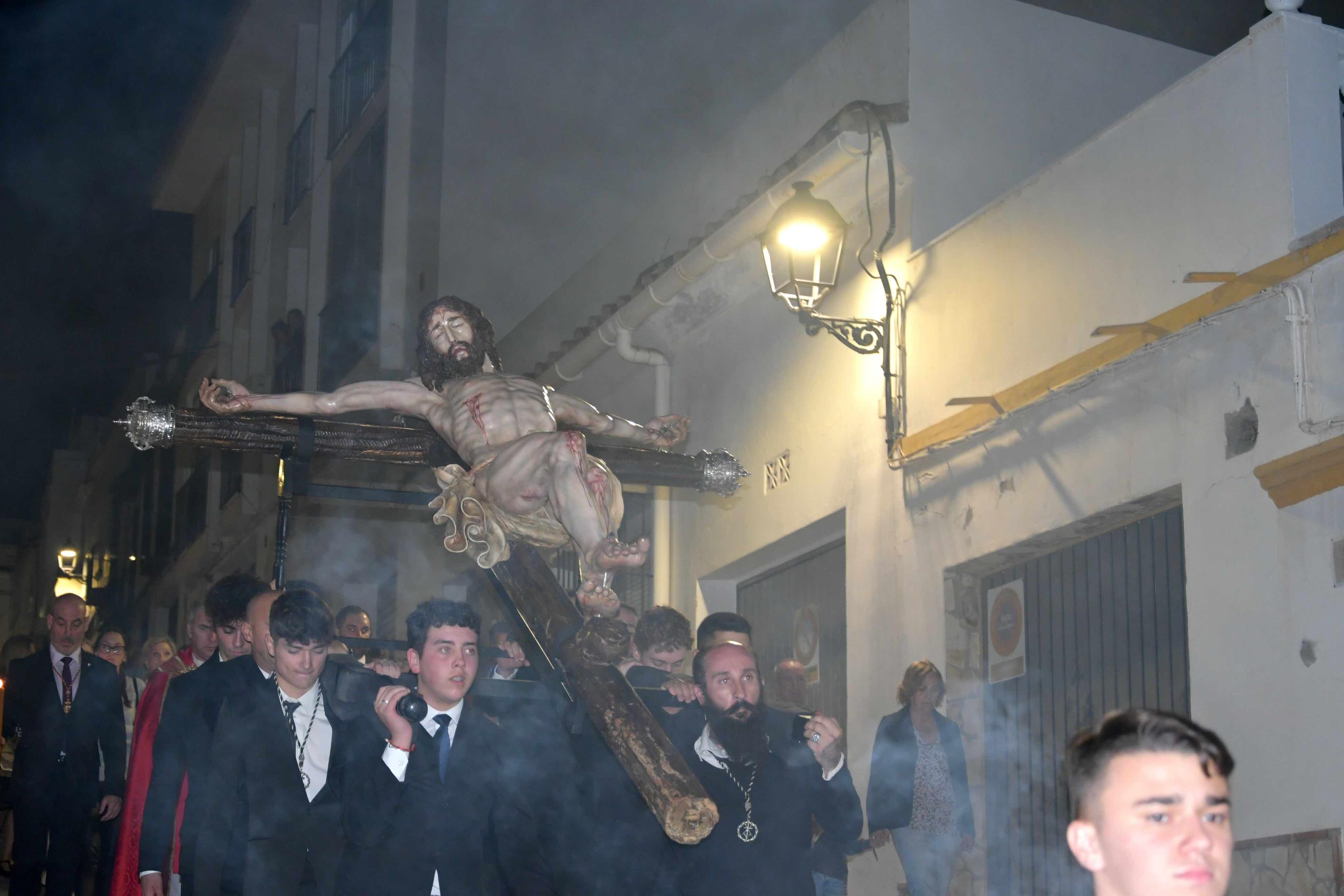 El Vía Crucis comenzó tras la misa de las 20.00 horas, e hizo el siguiente recorrido: Plaza de la Iglesia, Rubín de Celis, San Nicolás, La Paz, Plaza Espartero, Vallecillo Luján, Tambor, Conde de Lomas, Coronel Moscoso, Pasaje Cuatro Vientos, Cementerio San Miguel, Pasaje Cuatro Vientos, Coronel Moscoso, General Lacy, Almoraima, San Felipe, Plaza de la Iglesia y entrada al templo.