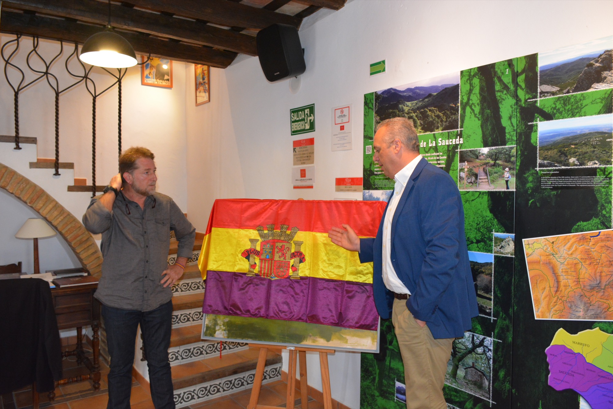 El alcalde de San Roque, Juan Carlos Ruiz Boix, en su calidad de vicepresidente de la Diputación Provincial, ha presidido el acto de cesión del cuadro, que representa la Ermita de la Sauceda, y luego visitó la exposición “Hacia el Exilio”. El primer edil estuvo acompañado, entre otros, por el presidente del Foro por la Memoria Histórica, Andrés Rebolledo.