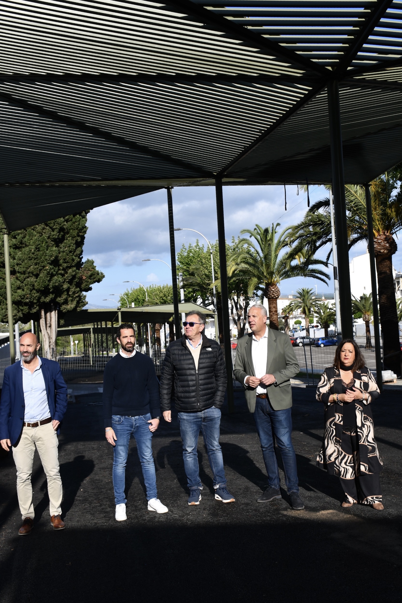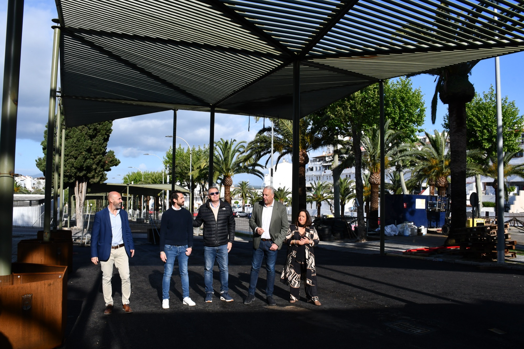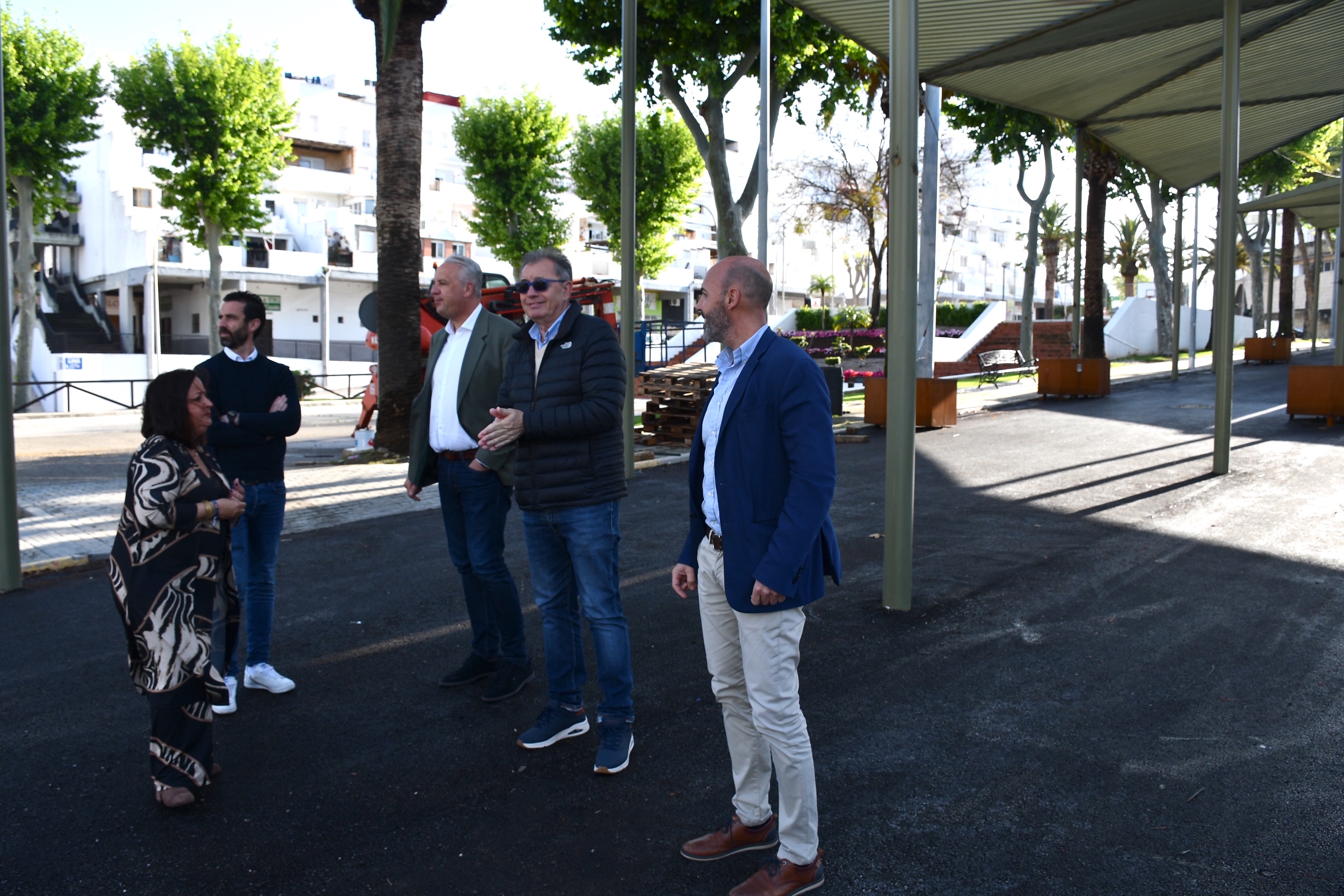 El alcalde, Juan Carlos Ruiz Boix, ha visitado la calle Poeta Juan Ramón Jiménez en el Recinto Ferial del Ejido, donde la empresa Atlántico 18 está terminando de instalar unas pérgolas bioclimáticas, de más de mil metros cuadrados de superficie. El primer edil estuvo acompañado por los tenientes de alcalde responsables de San Roque Ciudad y Mercados, María del Mar Collado y David Ramos, así como de técnicos municipales.