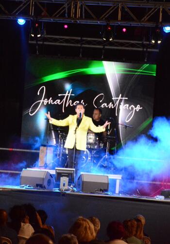 Los cantantes Jonathan Santiago y Miriam Fontalba y el grupo Al Son del Sur ofrecieron, anoche, un gran concierto en el Recinto Ferial de la Bahía, que contó con una nutrida participación de público y donde se garantizaron todas las medidas de seguridad e higiene por Covid.