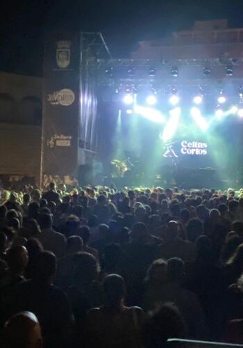 Previo al inicio del espectáculo, Ramos y otros ediles saludaron a los artistas. Desde las 21.30 horas, se sucedieron las actuaciones del DJ-Speaker Micky Rodríguez, con las mejores selecciones musicales, cargadas de dinamismo, que hicieron bailar a los presentes; y las de grupos afamados de los 80 y 90, como Celtas Cortos, de larga trayectoria y grandes éxitos; o el más irreverente y humorístico rock metal que ofreció Mojinos Escozíos.