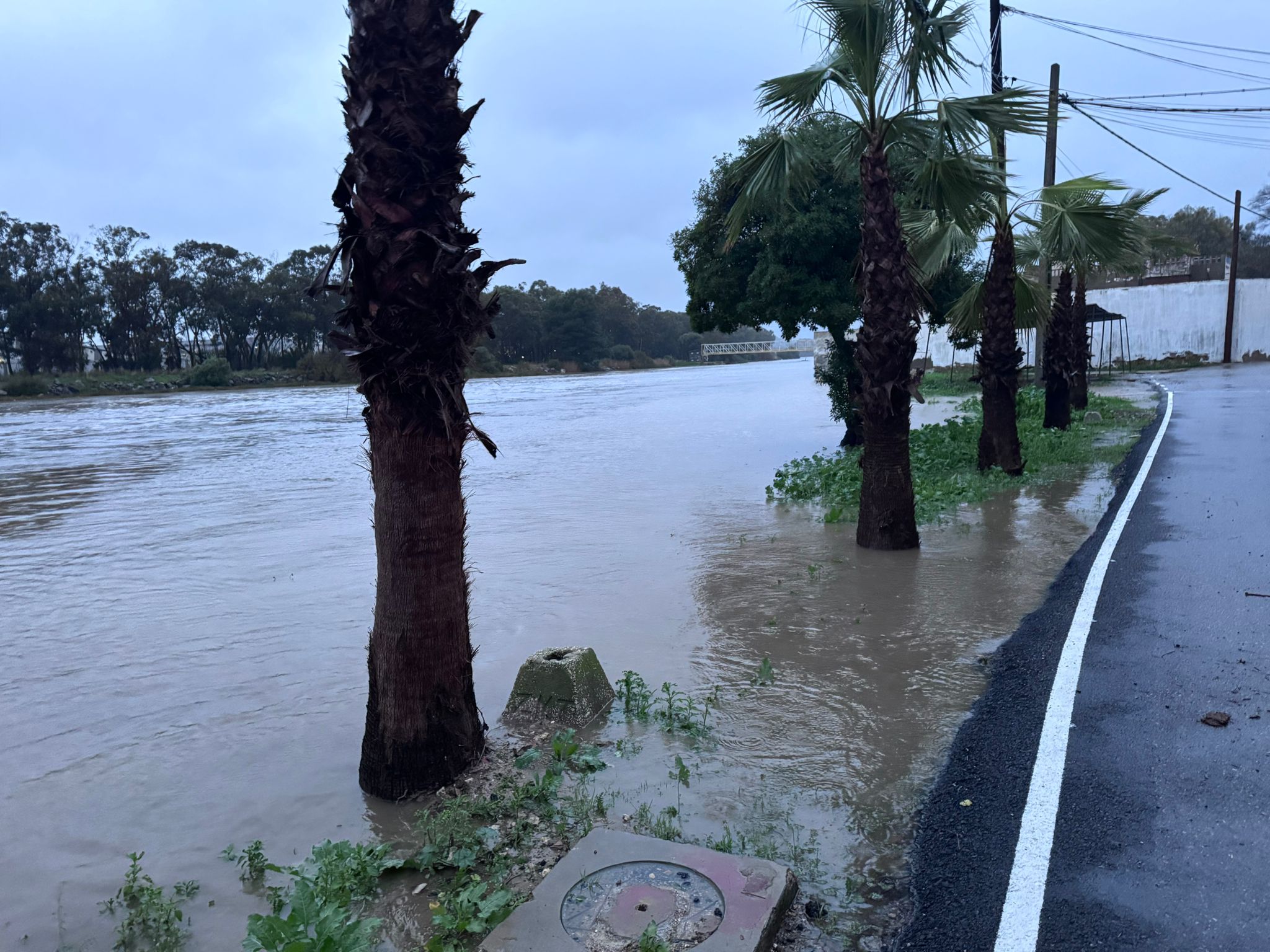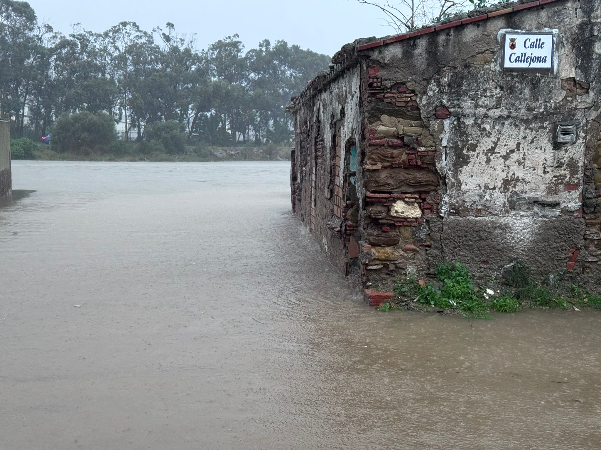 Las inundaciones han obligado a cerrar las entradas a la barriada de Guadarranque, y en Pozo del Rey el rio Cachón se ha desbordado, entrando el agua en algunos domicilios y garajes.
