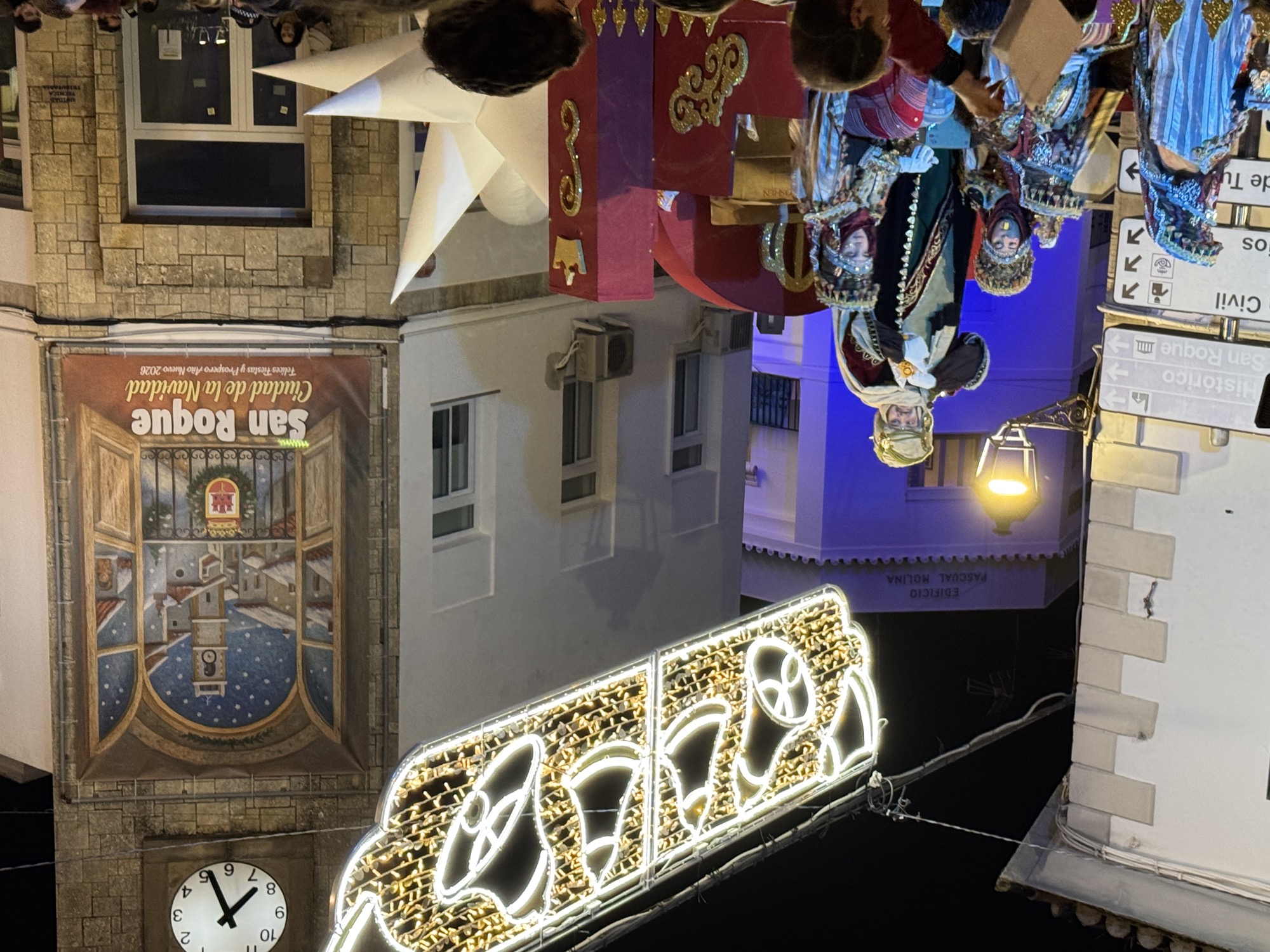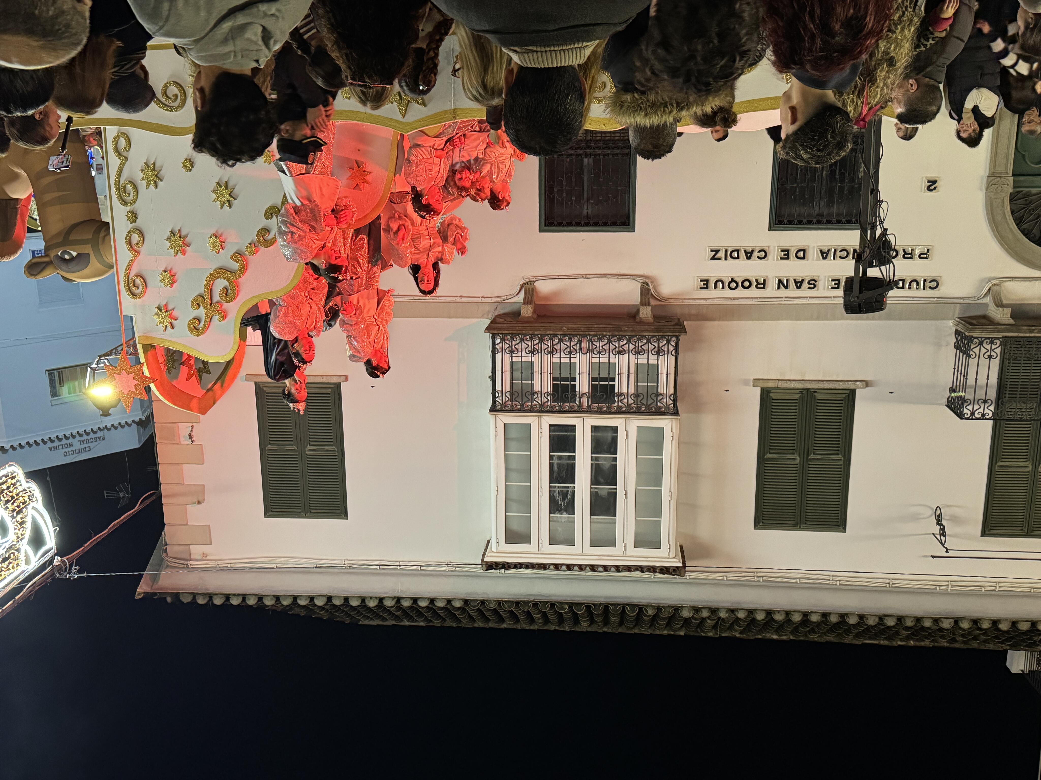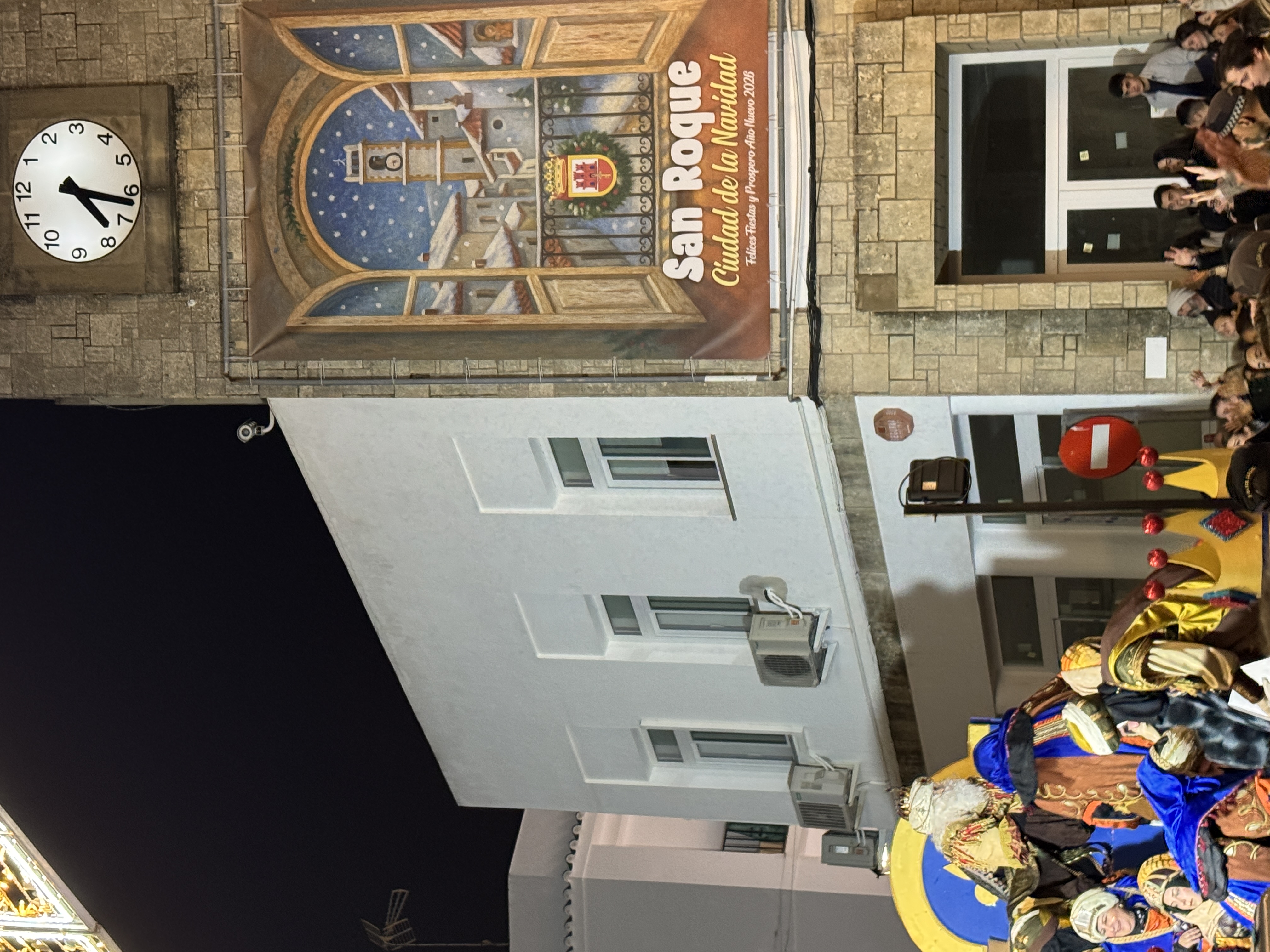 La Cabalgata de los Reyes Magos salió pasadas las 5:30 de la tarde de la avenida Carlos Pacheco, y recorrió la calle Málaga hasta llegar a la Alameda, donde en la puerta del teatro se realizó una recepción a niños, que pacientemente habían guardado cola mientras escuchaban al Coro Ciudad de San Roque, que interpretó villancicos.