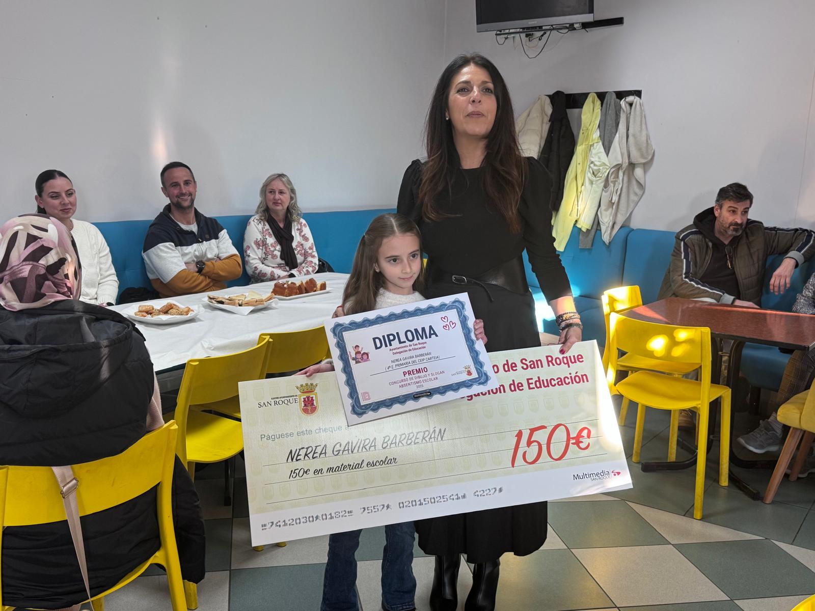 Los premios han consistido en un Cheque de 150 euros en material escolar a canjear en la papelería la Torrecilla con lo que también se incentivan los negocios de San Roque, como han hecho también celebrando la entrega de premios con una merienda en el Centro de día de San Roque.