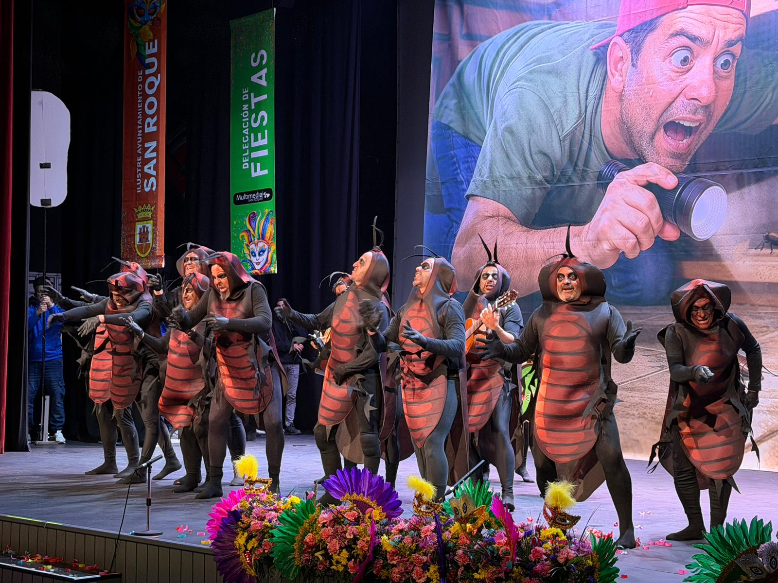 El público asistente en la noche de este viernes a la Gran Final del Concurso Oficial de Agrupaciones Carnavalescas de San Roque disfrutó de un gran espectáculo a cargo de las ocho formaciones participantes, que tuvo como colofón la actuación estelar de la chirigota gaditana “Los amish del mono”. El certamen fue organizado por la Delegación de Fiestas del Ayuntamiento de San Roque, con el concejal Abel Heredia a la cabeza, quien asistió a la final junto a la alcaldesa accidental, María del Mar Collado, y otros ediles de la Corporación.